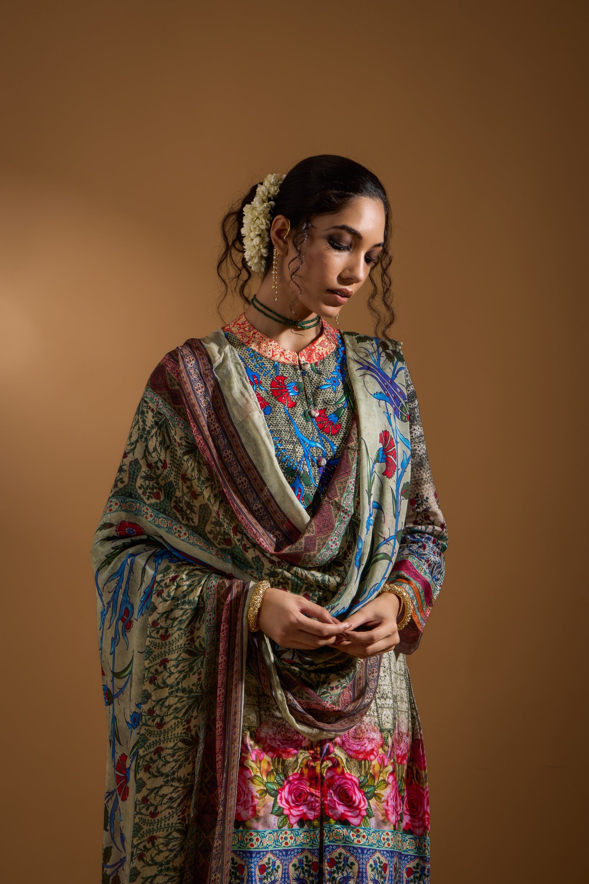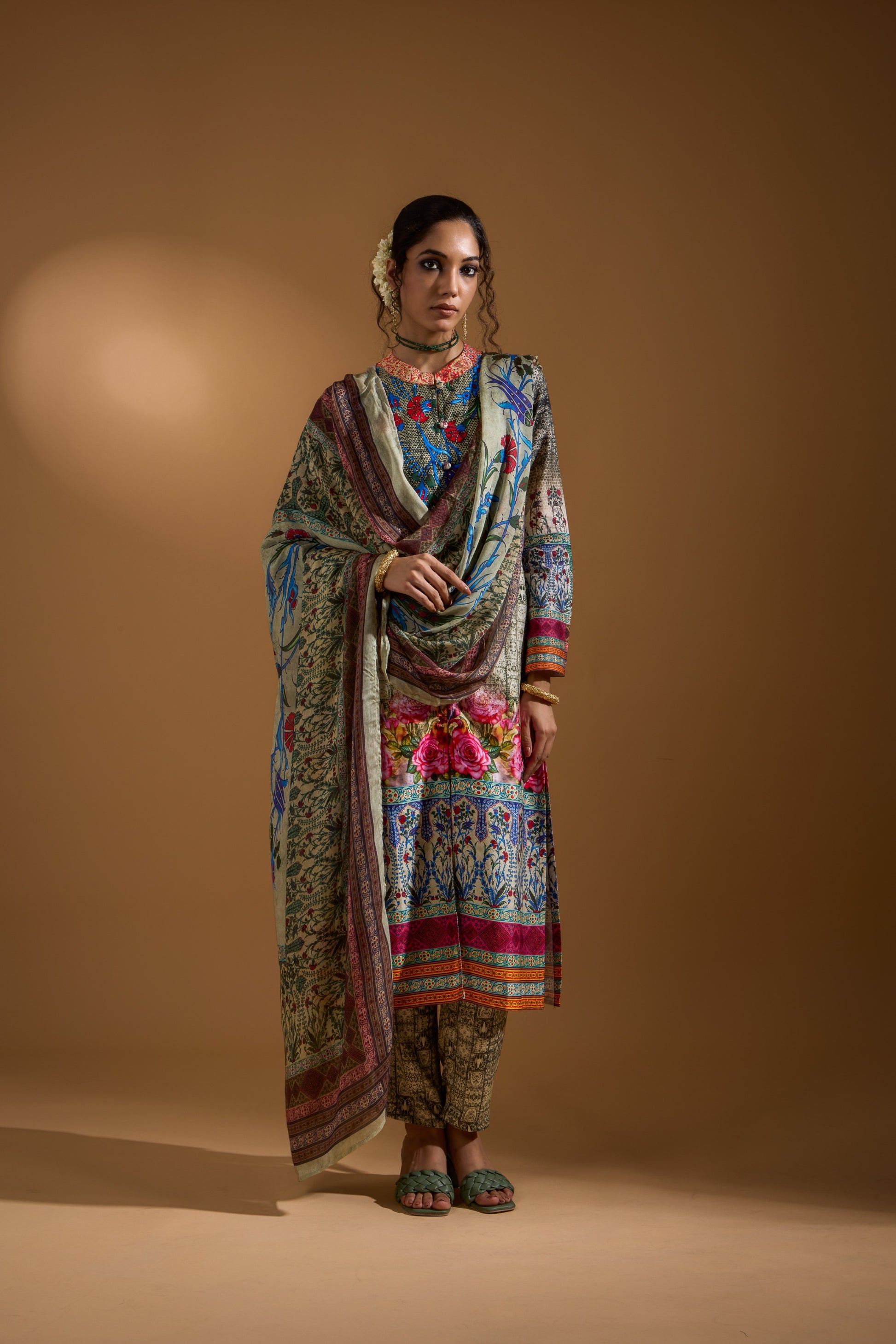 Discover elegance in our printed Pakistani-inspired 3-piece suit. It includes a breathable full-sleeve kurta, printed pants with two pockets and an elastic waistband, and a matching printed dupatta. Perfect for any occasion, this set combines traditional charm with contemporary style.
